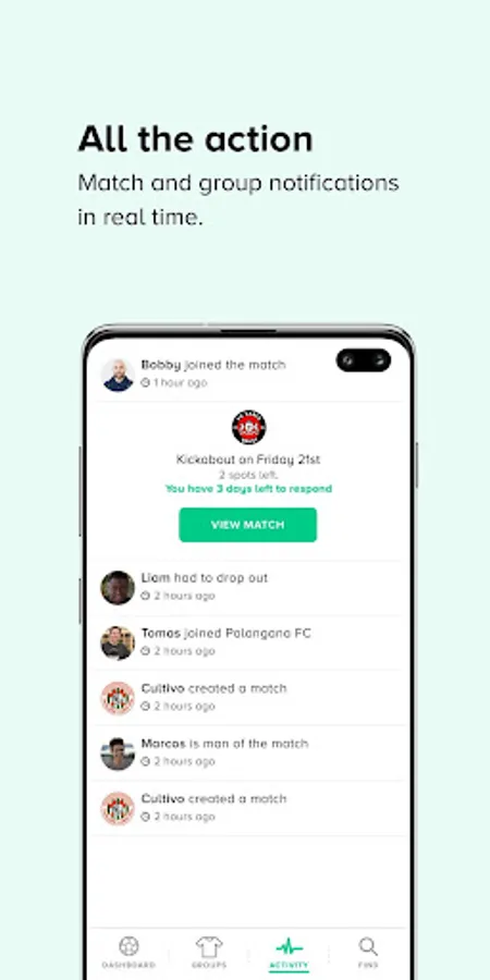 Fulby helps you organise football matches days, hours or minutes before a match begins. Create a group, invite your friends and post a match. It's that simple.