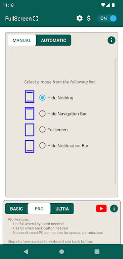 - Enjoy the apps/games/browsing in full screen without Android Bars