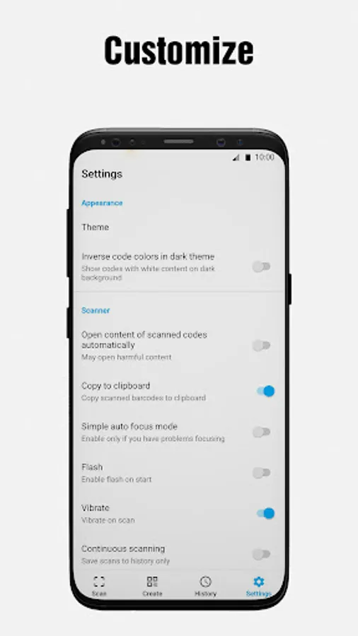 In addition to reading and scanning QR codes, certain QR code readers also allow users to generate their own QR codes, scan QR codes from photos, and scan QR codes stored in a gallery. You can import contacts from other apps, create QR codes from clipboard text, change the app's color, theme, and dark mode settings, scan multiple QR codes at once, export as.csv.txt, import as.csv.txt, add to Favorites, and share with ease.
