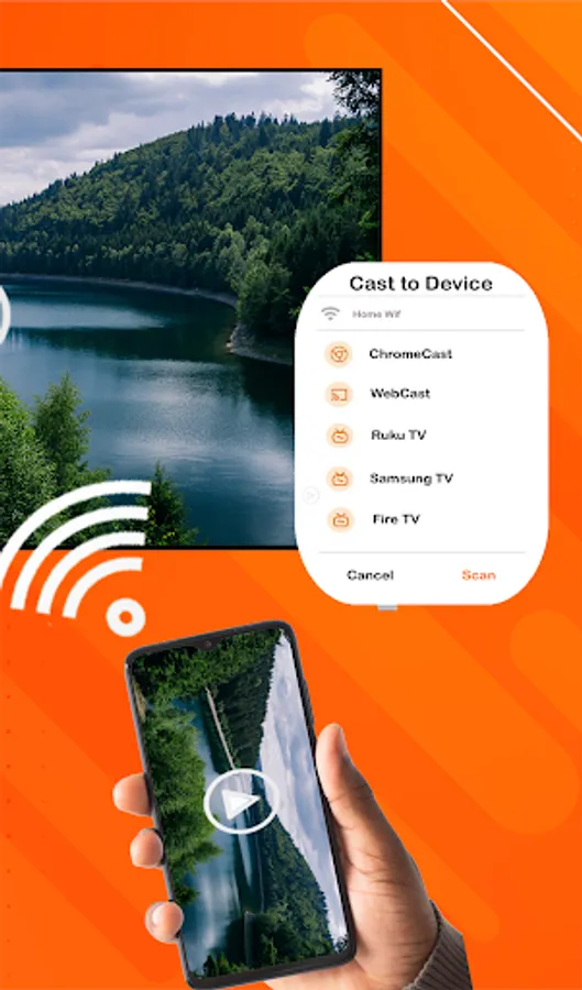 You want to cast phone to Roku, Amazon Fire TV, Samsung Smart TV, Chromecast or any other device? No problem just scan and search for the device, connect to Roku TV, Apple TV or any other DLNA Renderers and quickly mirror your phone screen to it, greatly improving your movie viewing experience. Just find your favorite video on your phone and connect to the device.