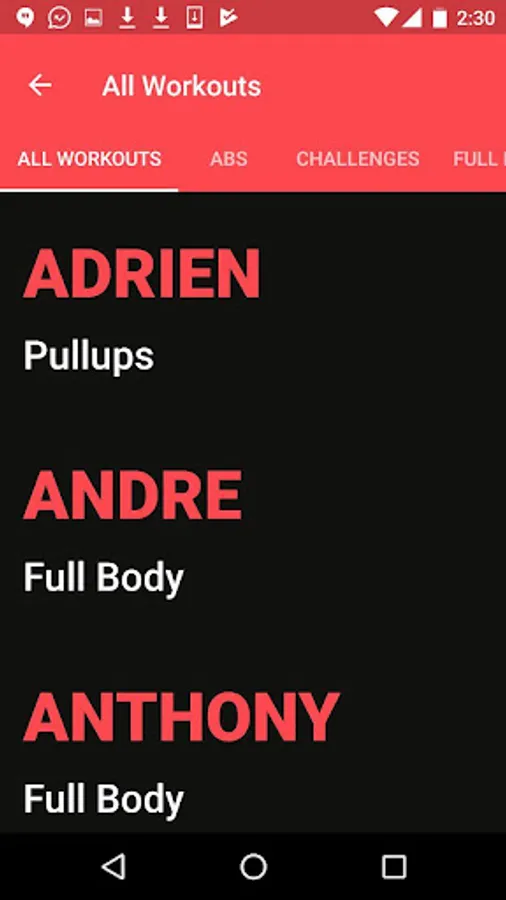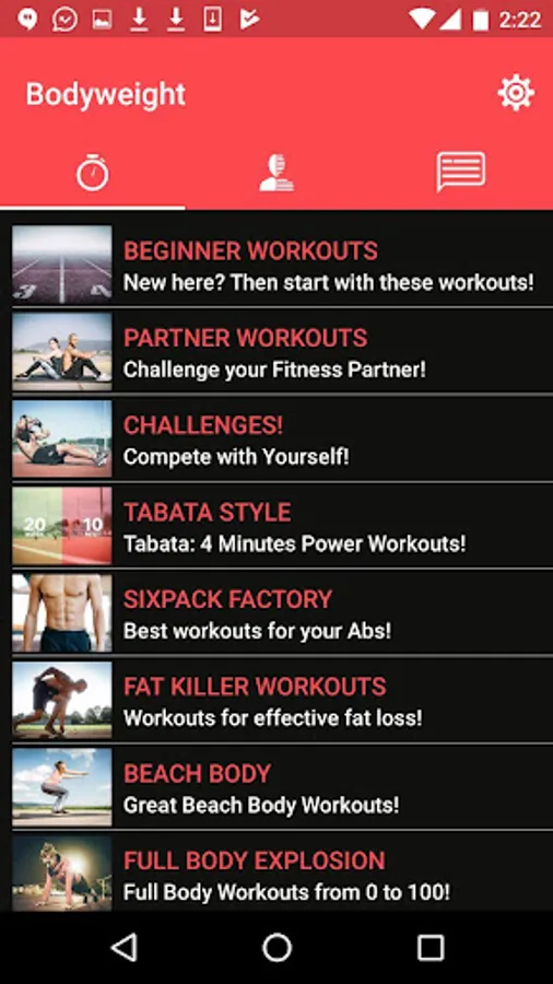 Your Full Control Bodyweight app contains over 75 workouts. Each workout is divided into 4 levels of difficulty. How so? So that beginners, advanced, professionals and absolute bodyweight addicts can achieve the workout in their intensity. Choose from these categories: