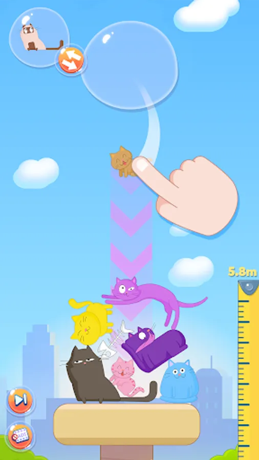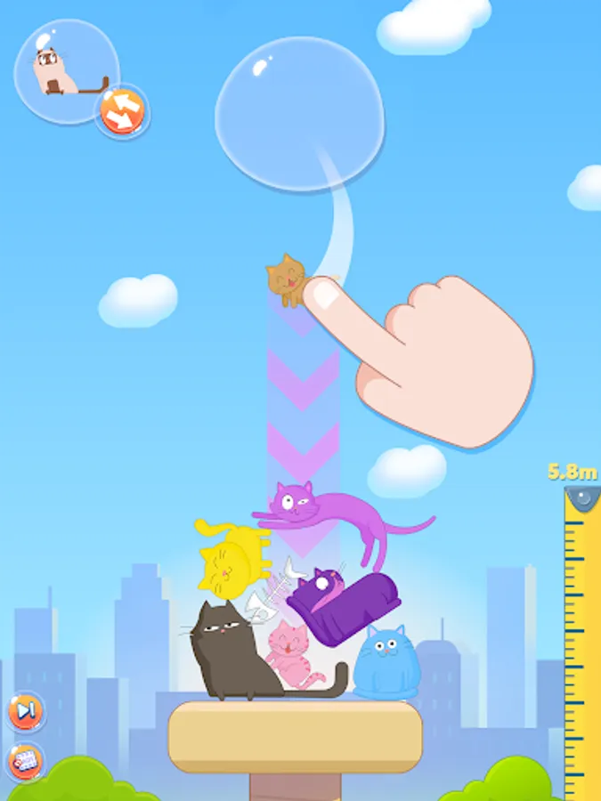 Rotate, position and release cats to make the tallest Cat Stack you can and score the highest points! If your cat falls off the tower, it’s game over for you and your kitty!