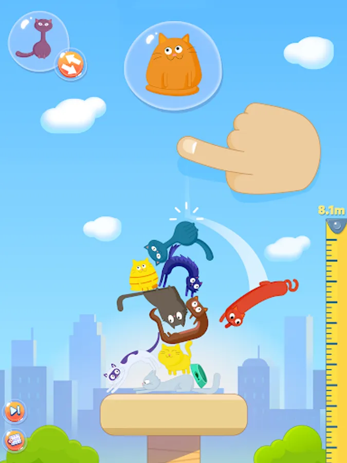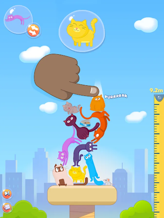 Do you love cats? Even when they are smelly, glowing or made of jelly?! Keep an eye out for all the distinctive cats with different effects - they might make your tower fall!