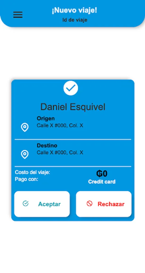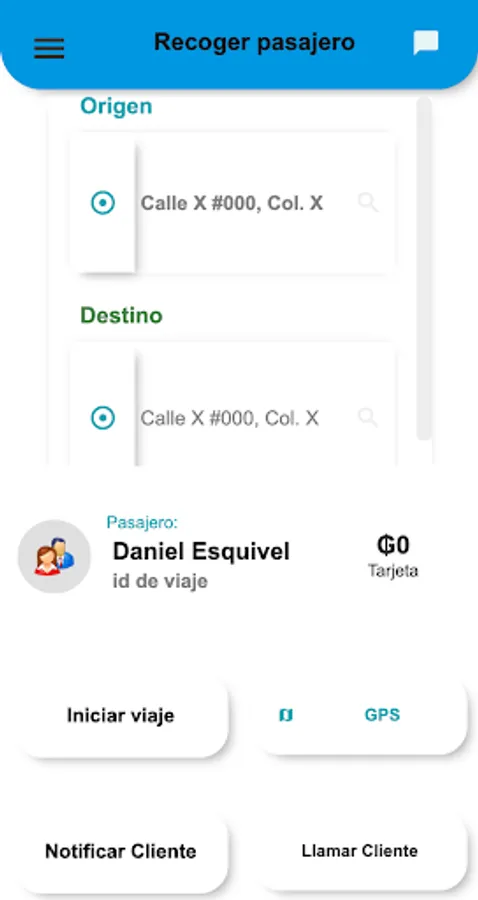 You will be able to accept requests, communicate through a chat with the client, and you will be able to notify them when you are already at the starting point. You can charge in cash, as well as with a card using the payment market. At the end of the trip you will be able to rate your user.