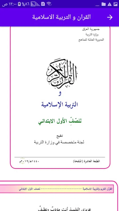 - The application contains the book of the Noble Qur’an and Islamic education for the first grade of primary school