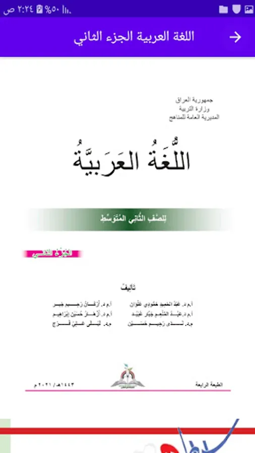 - The application contains the Arabic Language Book C 2 for the second intermediate grade