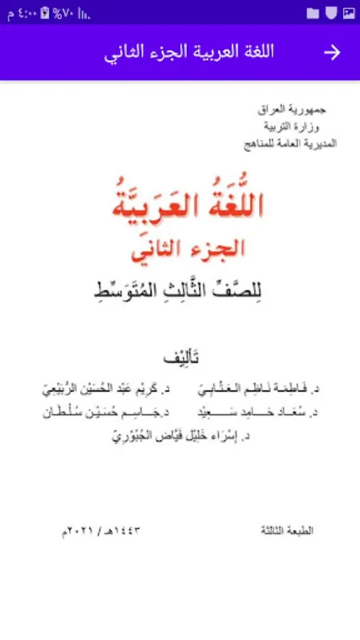 - The application contains the Arabic Language Book C 2 for the third intermediate grade
