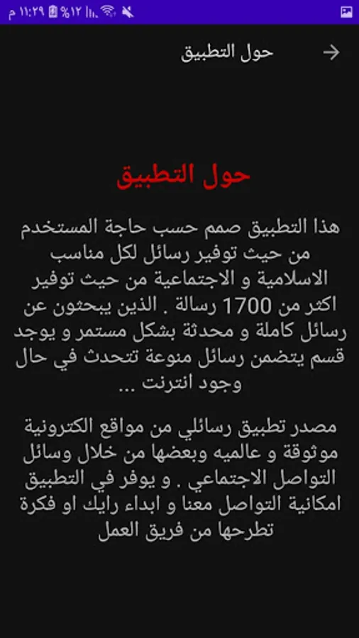 An Arabic application that provides users with more than 1500 messages and a variety of messages (Islamic