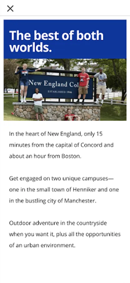 The New England College app is built specifically for current and future students to learn more about life at NEC! Download the app to: