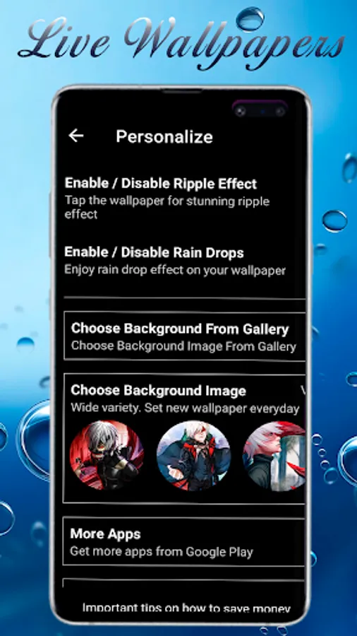 Here are cool teen set of dope 4K live wallpapers woith KANEKI KEN. Tokyo Ghoul Water Ropple Live Wallpapers will make you look stylish!