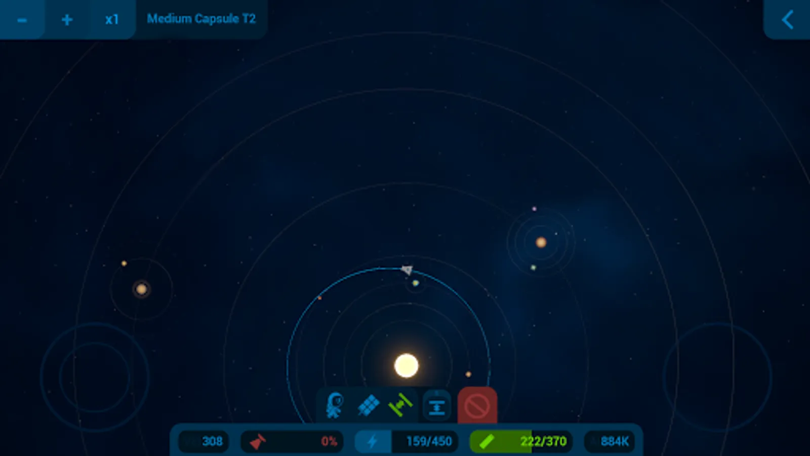 Tiny Space Academy uses a simplified version orbital mechanics to make it more fun and playable. This still offers an educational experience and challenging game play.