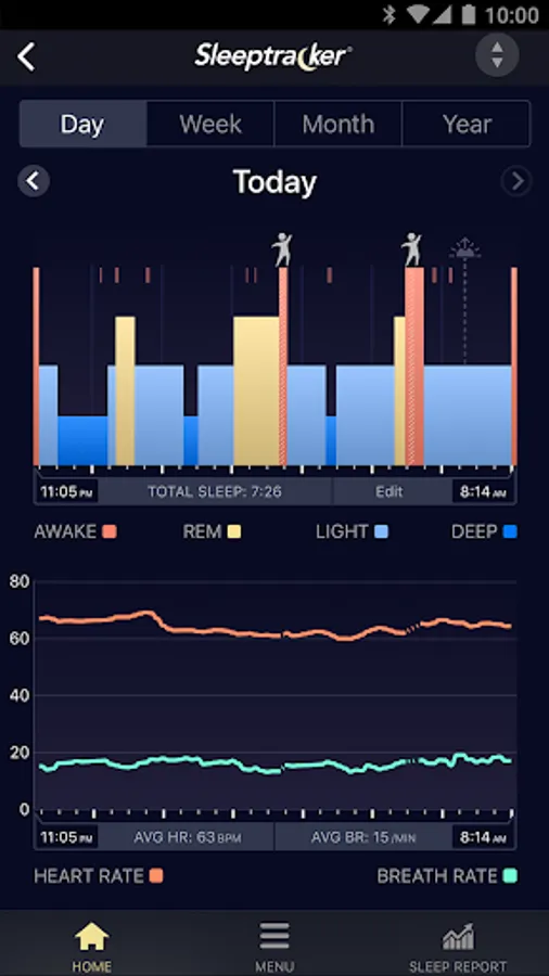The app provides detailed daily sleep graphs and sleep metrics derived from accurately and continuously monitoring the sleeper’s respiration rate, heart rate, and movements throughout the night. Easy-to-understand sleep graphs visually distinguish between periods when you were in REM sleep, light sleep, deep sleep, or awake. The AI Sleep Coach delivers personalized tips and insights to help you improve your sleep every night.