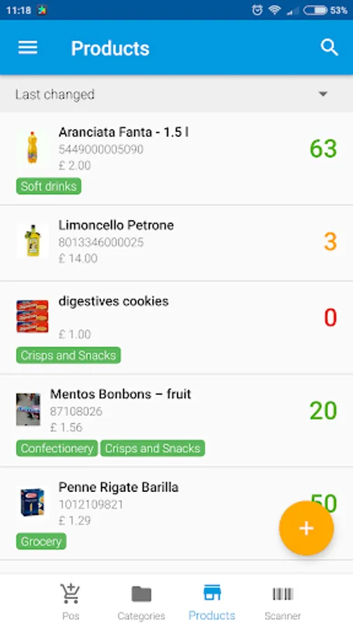 • Stock movements history: you can keep a record of all the stock movements using the smartphone camera to scan the barcode or via the web app using a USB barcode scanner