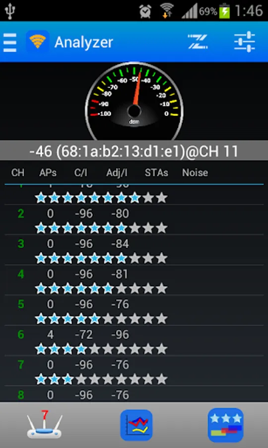 -Channel Graph displays and analyze channels in use to turn your Wi-Fi AP to the best channel