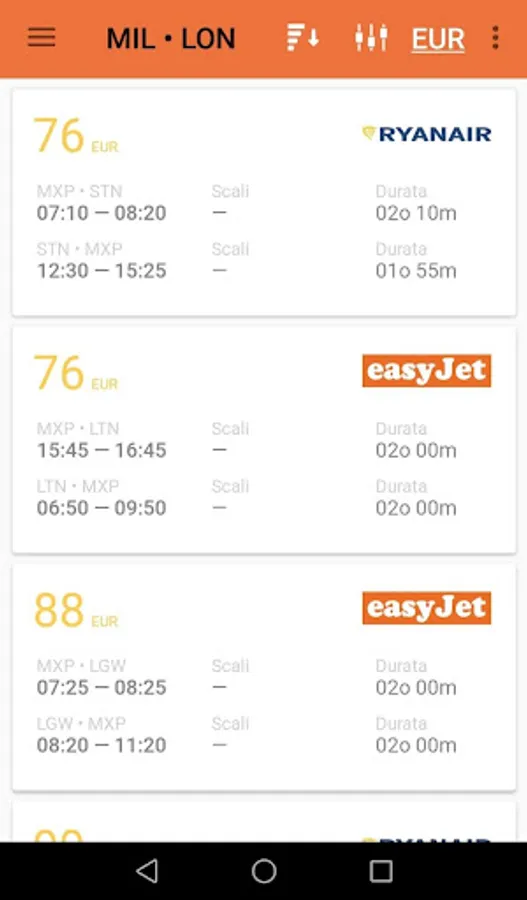 - Filter by price, airport of departure, arrival, airline, stairs, and time
