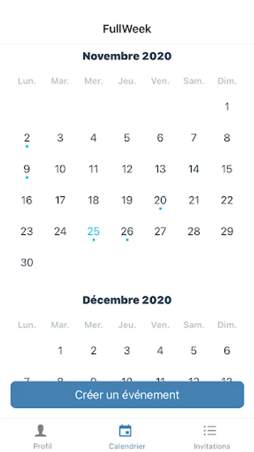 FullWeek will be your assistant to organize your agenda, prepare events for several. When are you available? Who brings the drinks? What time do we arrive? Everything is on FullWeek.