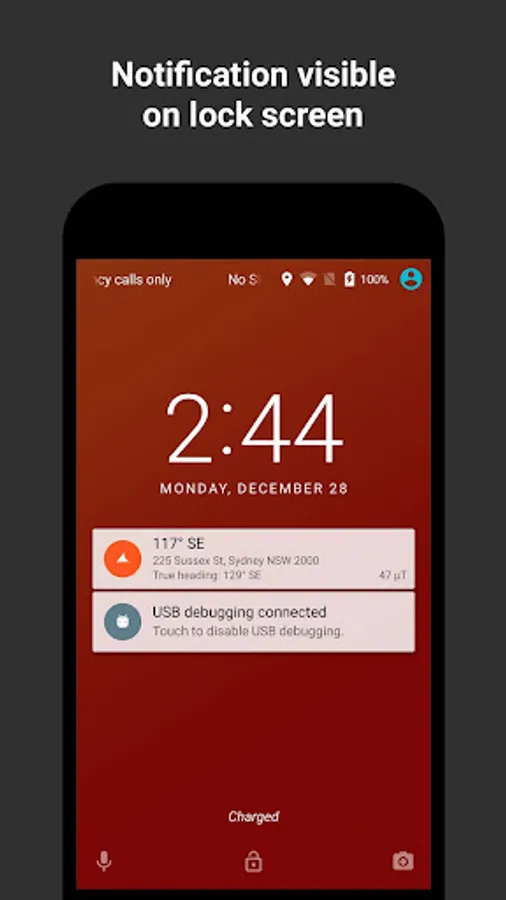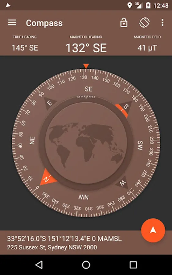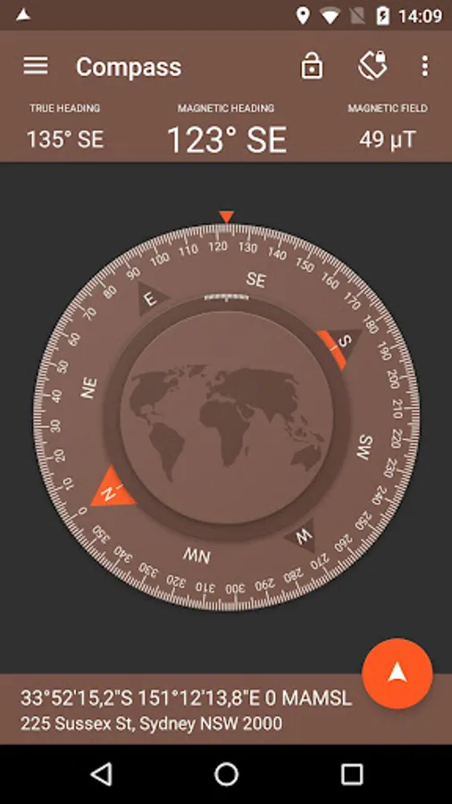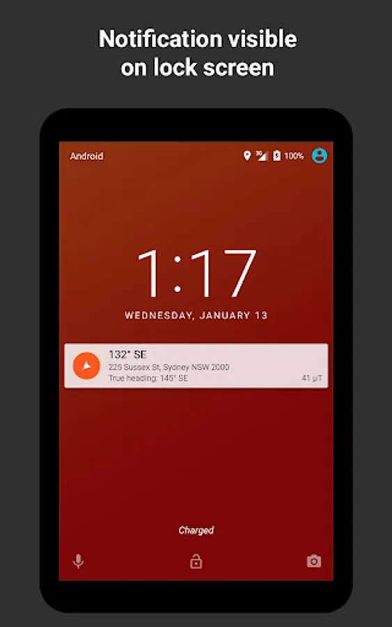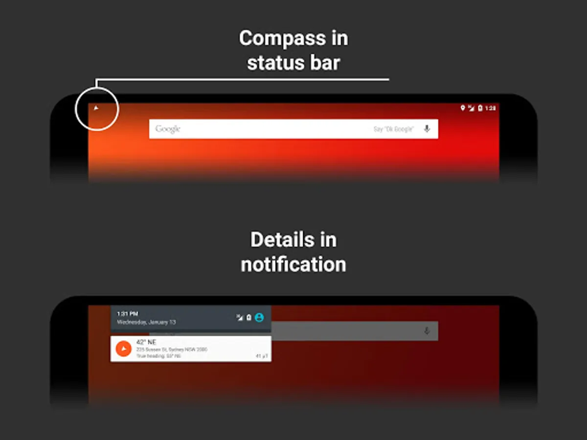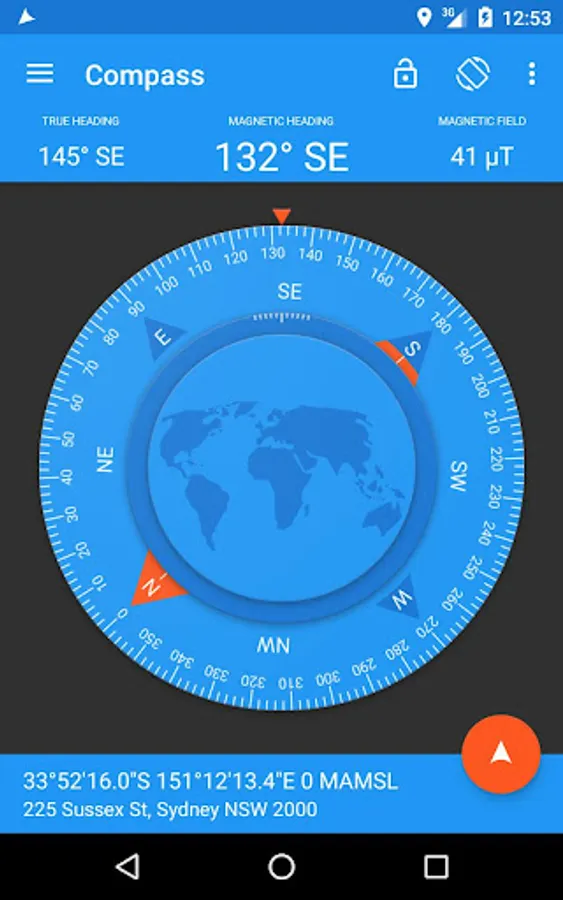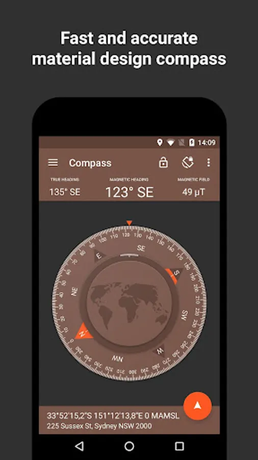 • Displays magnetic heading, true heading, magnetic field, location and address.