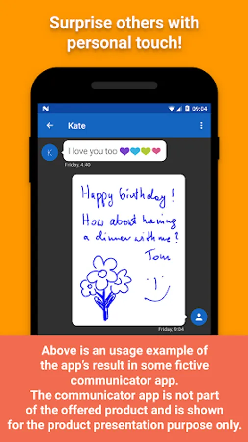 Surprise your friends with original, unique and personally handwritten messages. Send from any SMS (MMS), messenger, social media or e-mail app you prefer, using this great tool. Write a text, draw a sketch, a piece of art or create whatever you like.