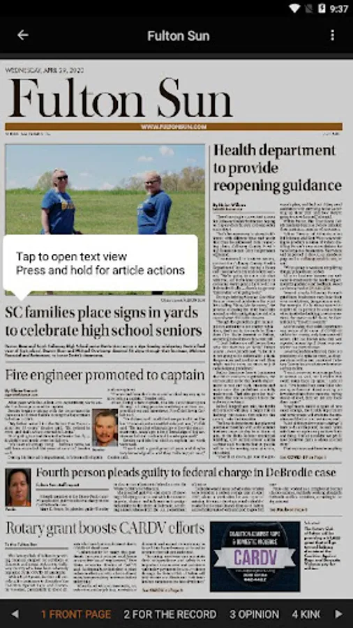 With the Fulton Sun app, you can view every section of the newspaper in a digital replica presentation. You can easily read the day's paper, share your favorite articles and even access previous editions.