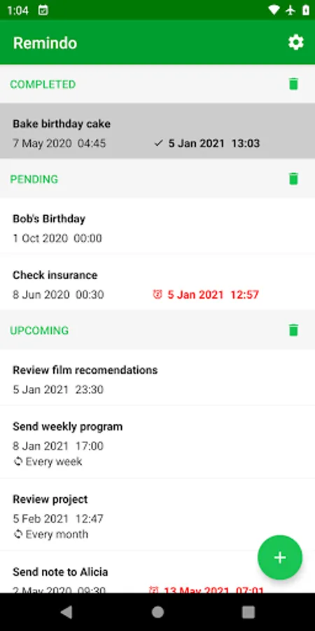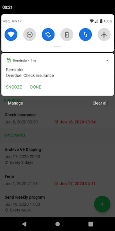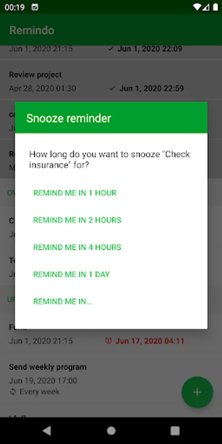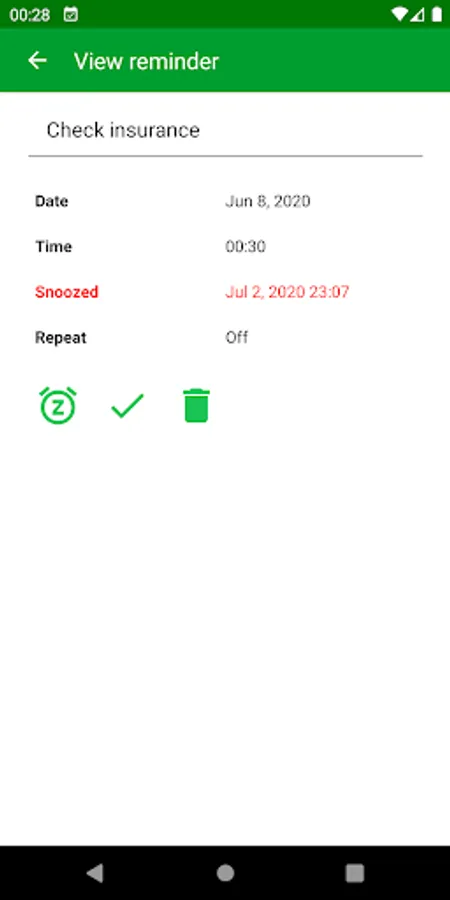 You can view all your reminders in a simple interface, snooze reminders or mark them as done. You can also set your reminders to repeat every few minutes, hours, days,...