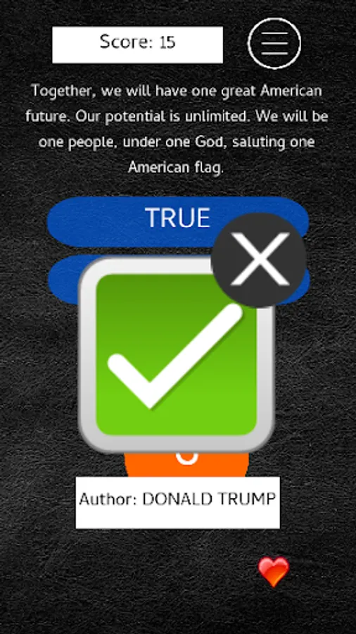 You will be presented with a quote at short intervals and would be required to affirm if the quote is from Donald Trump or not.