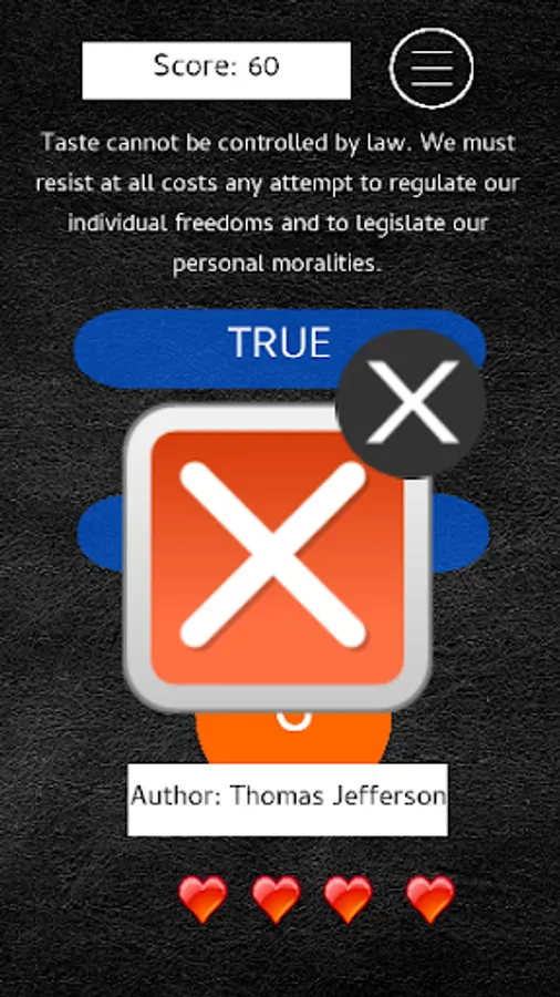 You have 2 options to choose from. True or False. Every correct answer gets 15 points. You have just 6 seconds to make a choice.
