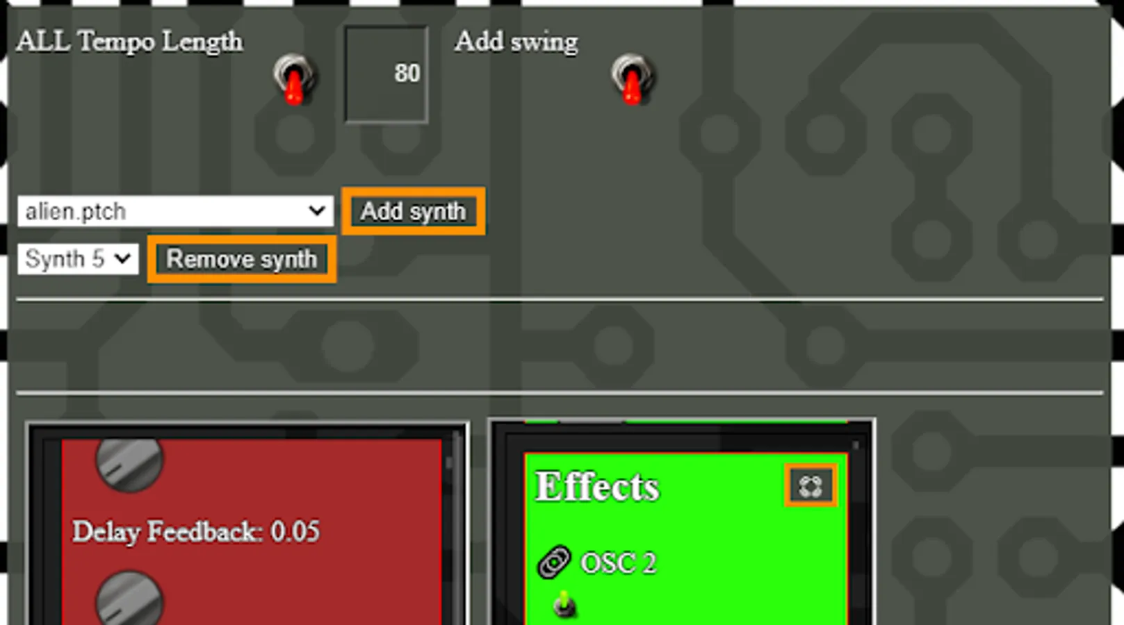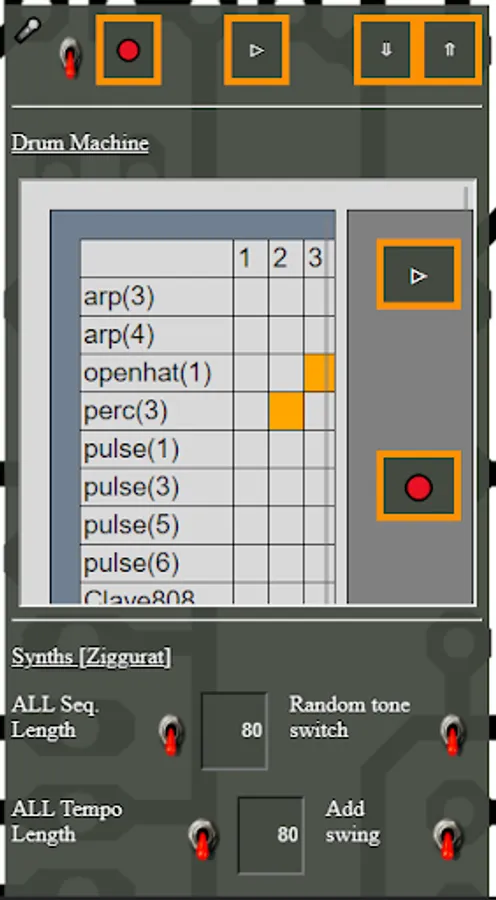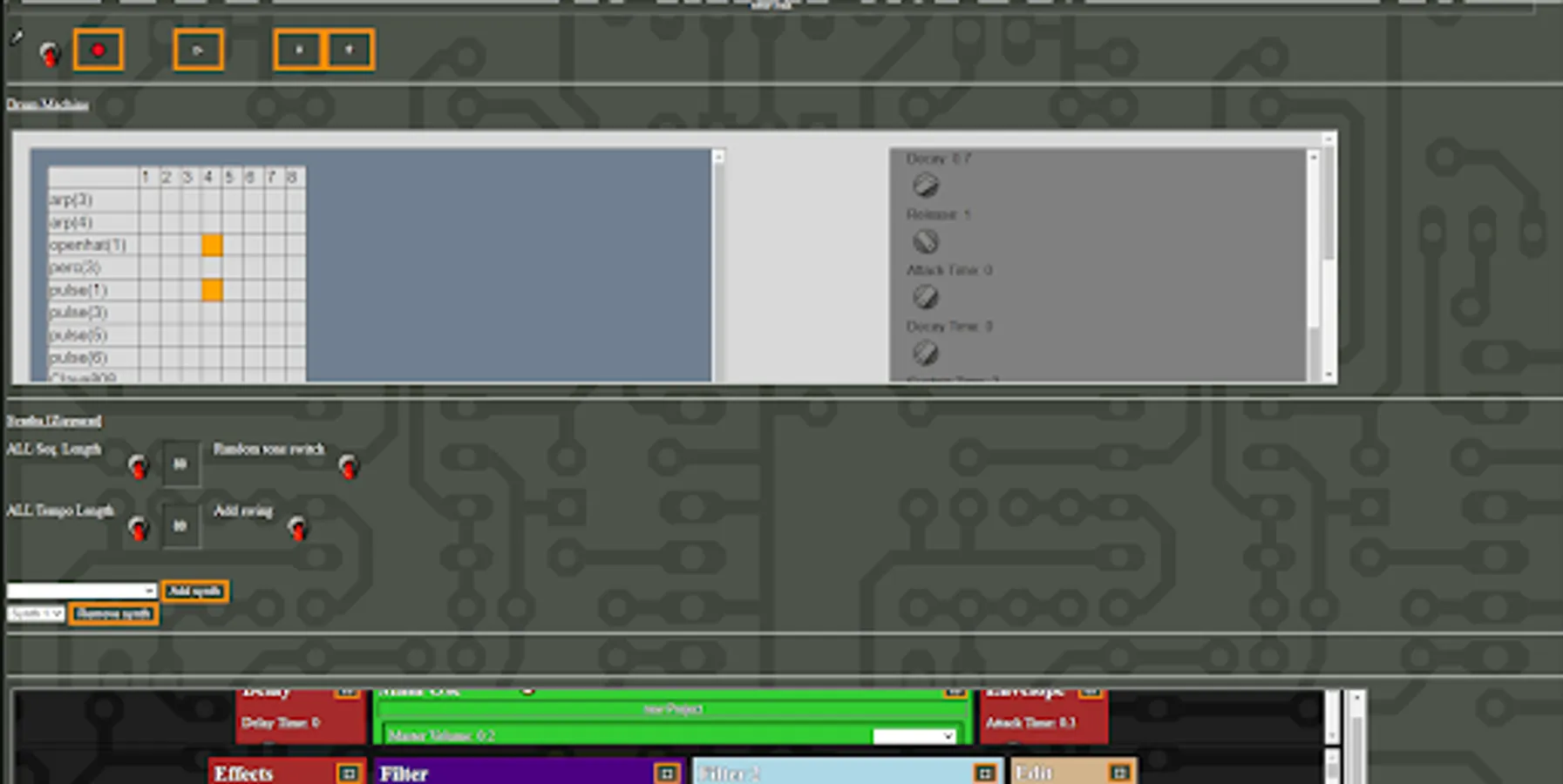 The possibility to combine synthesizers (up to 5), a drum machine and a recording of your own voice.