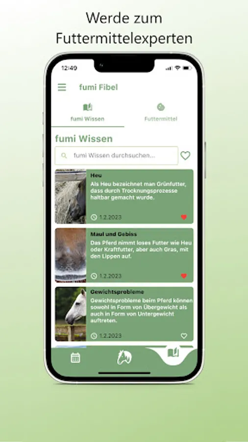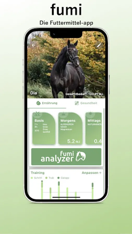 fumi turns you into a feed expert for your horse. Finally there is an easy way to scientifically check your horse's feeding. Create individual feed plans and share them with friends who take care of your horse.