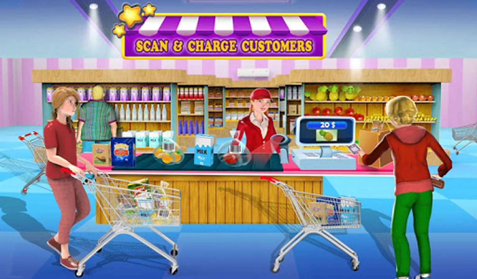 Play as a cashier in your very own grocery supermarket in girl wali new game & learn to operate cash register. In Super market management game you can learn to handle money as cashier at supermarket in girl wali new games. Grocery cashier is a time management game, customers are in queue, waiting to pay money and get their grocery items packed in larki wali game. It’s going to be such a great time management game working at the supermarket in larki wala game. Prove your skills as an experienced super market cashier to operate the cash register in larki wali games. Serve your customers in time & manage store, so they don’t get angry on any kinds of delays in larki wala games. Super market management game starts with an automatic machine you have to scan the price of each item and get the total of all items and ring up the price in gudiya wali games. Tap on the customer to receive money. Cash drawer will open and you can put the received money and return the balance amount to the customer.