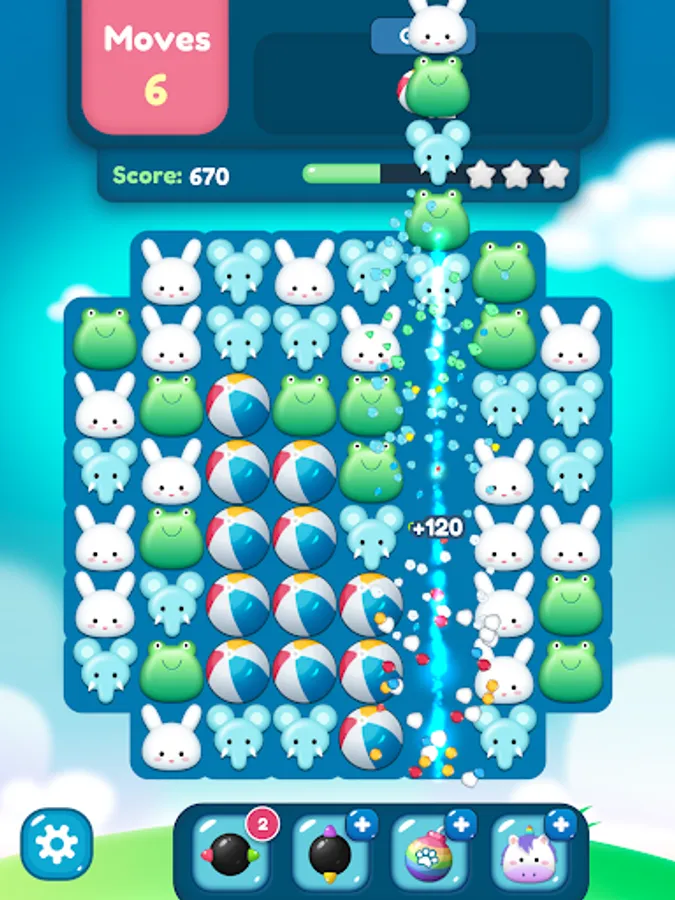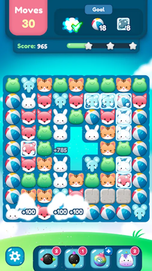 • Blast stone bocks, pop beach balls, and melt ice cubes to clear the board.