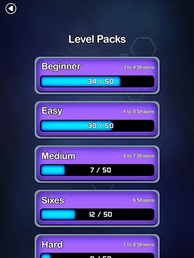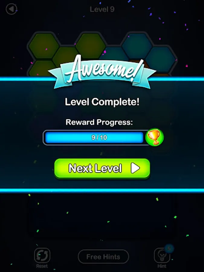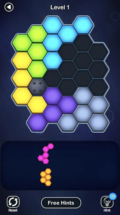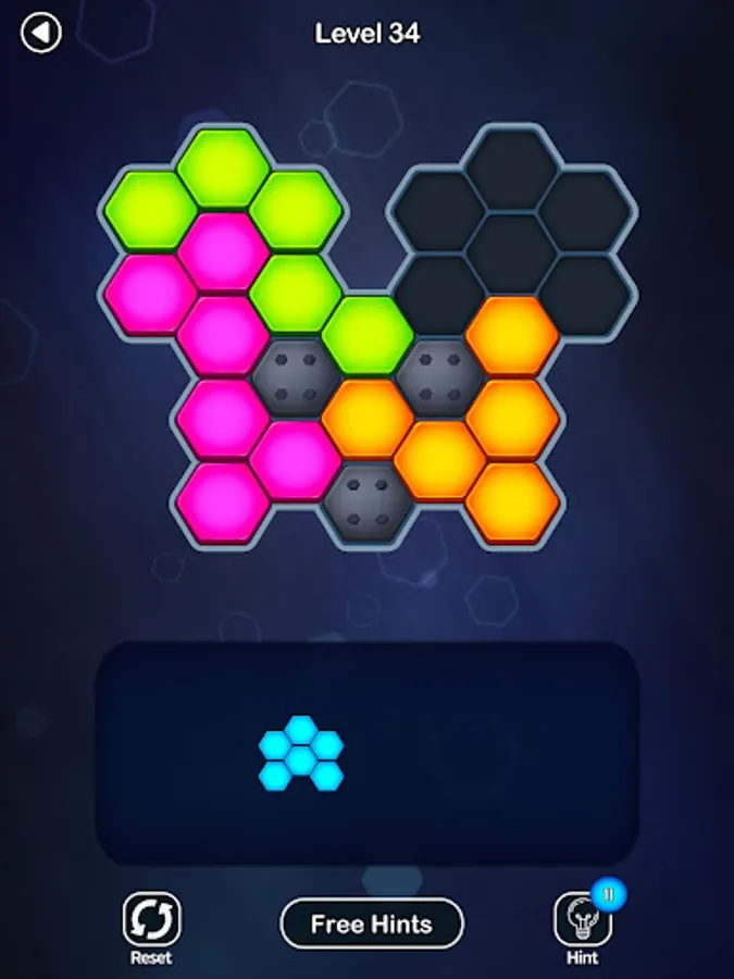 - Unlock additional hexagon block puzzles as you complete the levels in each difficulty.