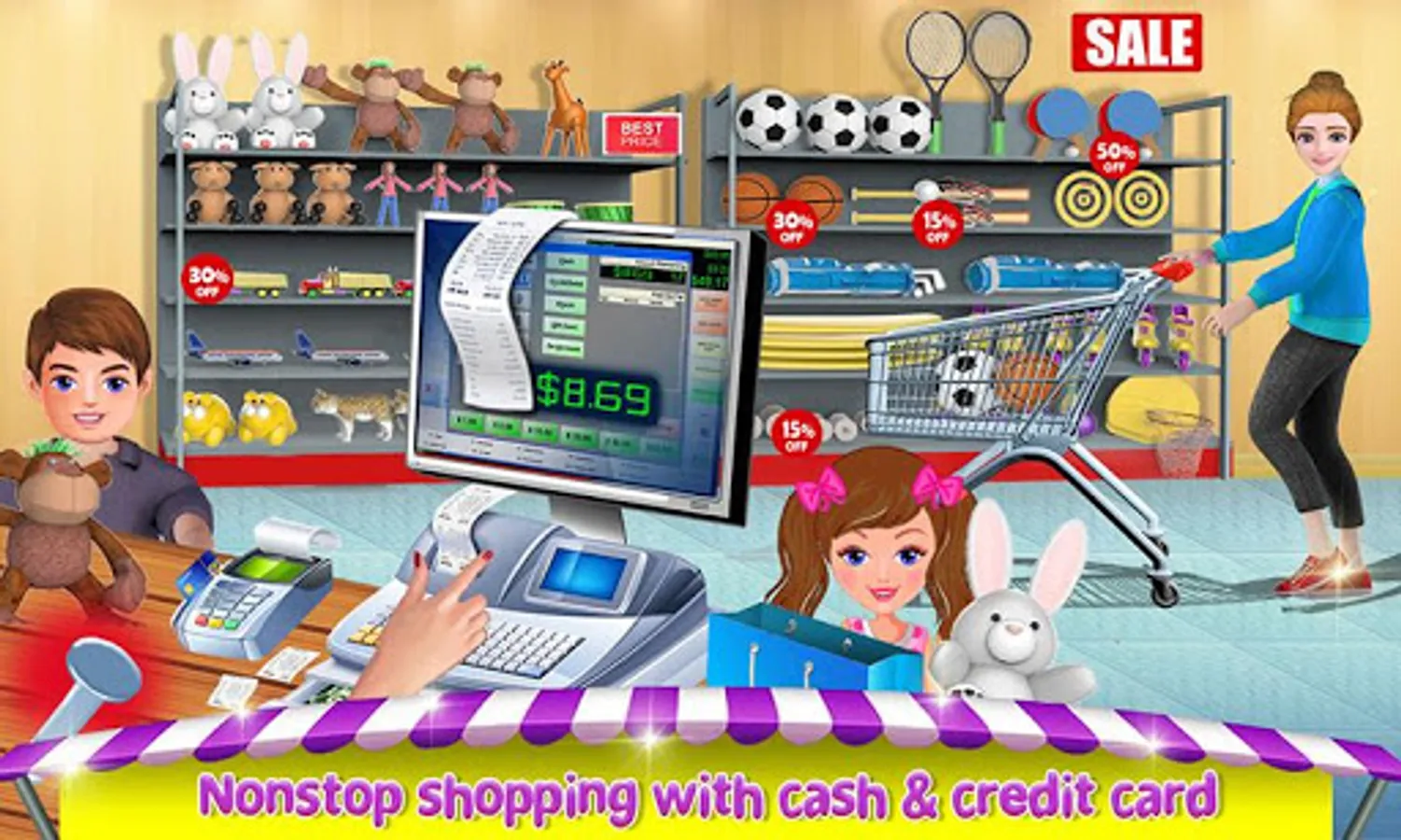 Live a luxury life & have fun with your girlfriends at black Friday online sales cash register shopping mall game! This black Friday shopping game for cashier girl to improve mathematical skill and cash register skills in a fun supermarket grocery store ATM machine gudiya wala game. Let black Friday online sales shopping girl first shop and get cash out at cash register counter in gudiya wali game. Experience real time shopping mall ATM machine simulator game. Grocery store cashier girl shopping mall game has different attractive cosmetics and black Friday sale dresses costumes for girl in gudiya wali games. supermarket grocery store shopping mall departments have amazing collection of black Friday sale, sell stuff grocery sales items, ATM machine, cash register counter & toys for making there day super-duper exciting at supermarket grocery sales store shopping mall game. Shopping mall grocery store cashing cash game have tons of grocery sales items, designer dresses, shoes and bags in gudiya wali games. So, get ready for a shopping like no other!