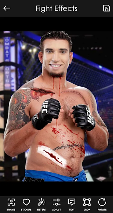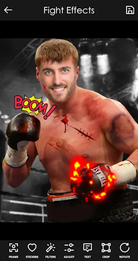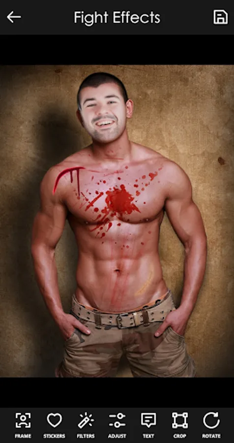 Fight Battle Photo Effect: advanced tools to add bloody stickers and bloody fight effects to your face on photo