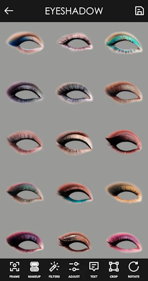 Eyelashes: Add mascara or false lashes on photo of your eyes to make your lashes long and lush