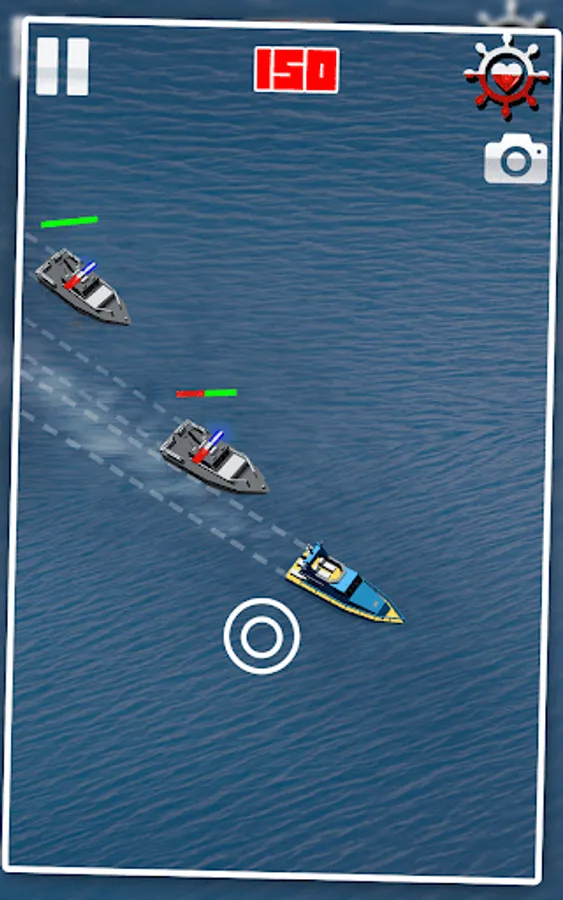 You are a runway driver escaping from police in the open water with your speed boat and chased by the high speed police boats. Don't be a fool to be caught by navy police, Just hold you acceleration of boat and dodge them as long as you can. Be careful to not hit the rocks or police boats. There are rock in sea as a hurdle. Collect cash for unlock new speed boats, your boats have three lives unless it hits with the rocks.