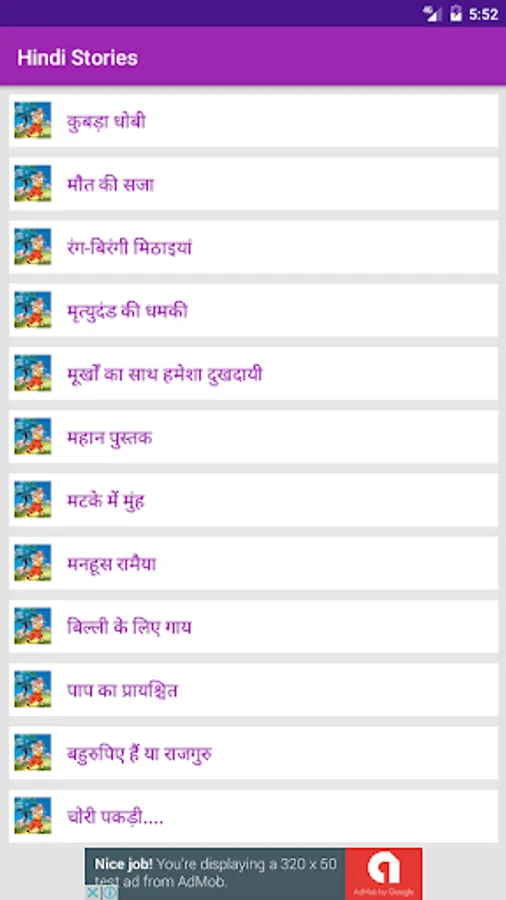 This app contains lots of stories in hindi in many category also its completely offline no need of internet for read any stories .