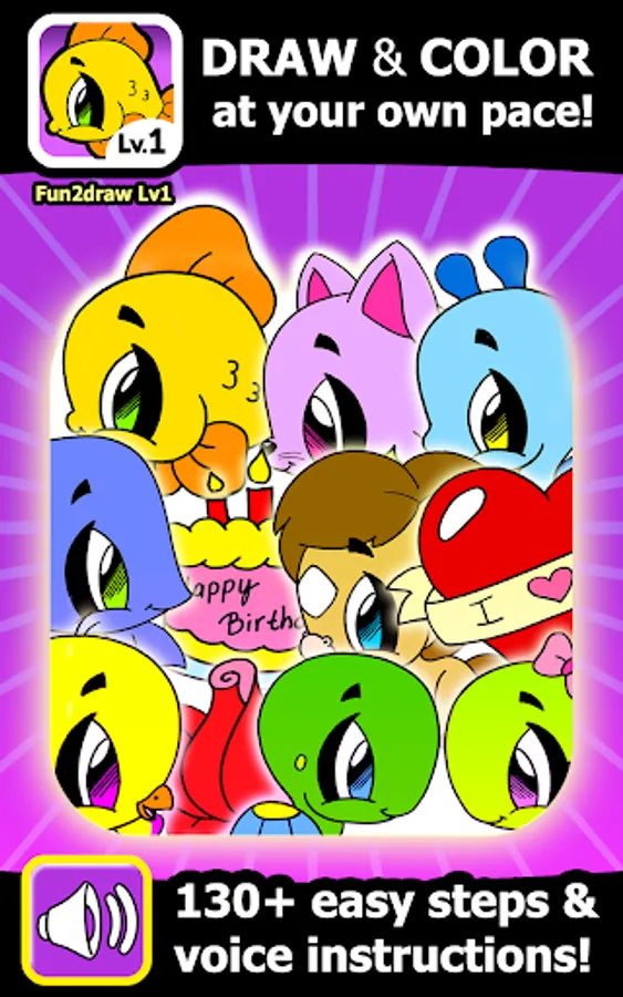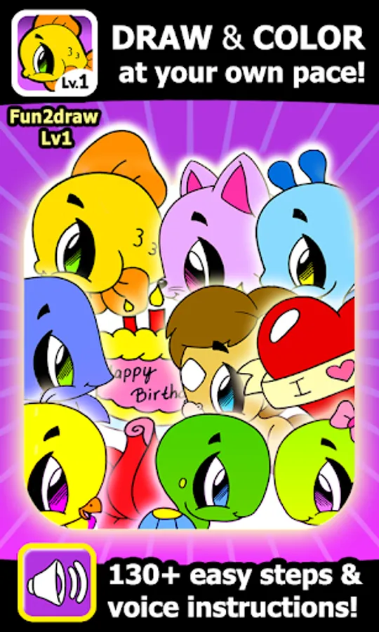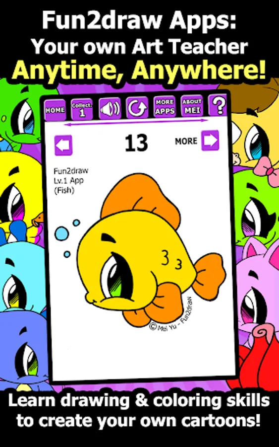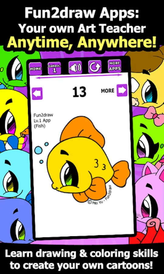 Designed by Canadian artist and Fun2draw creator Mei Yu, Fun2draw Lv1 offers super easy step-by-step drawing & coloring skills to turn simple shapes into beautiful, exciting cartoons, pets, and animals! Learn awesome tips & tricks from this cartoon art instructor to create your own cartoons in no time!