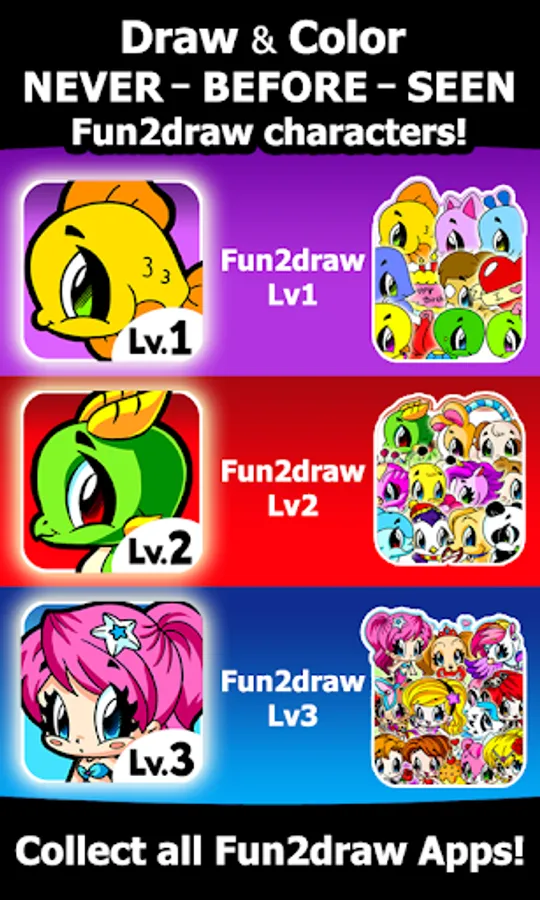 --- Take your imagination, drawing, and coloring skills further with Fun2draw Lv2 and Fun2draw Lv3 apps, also available on the Play Store!