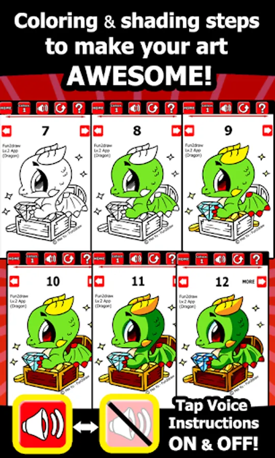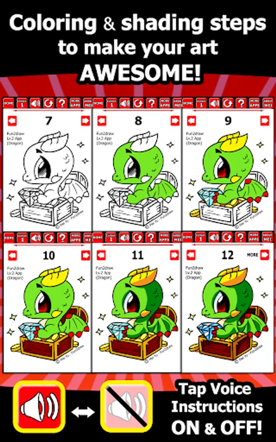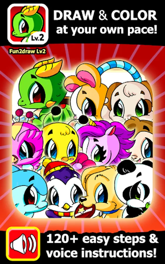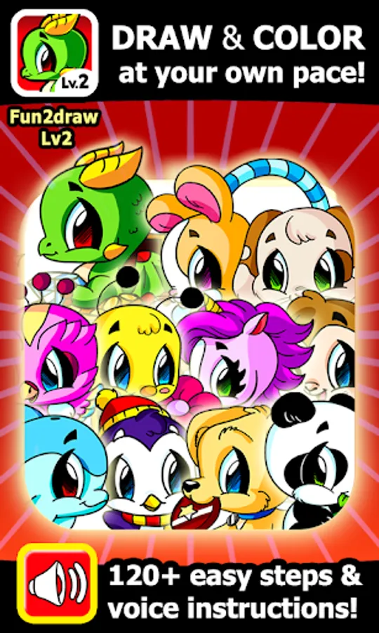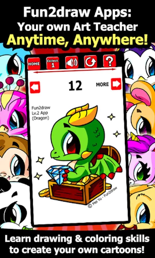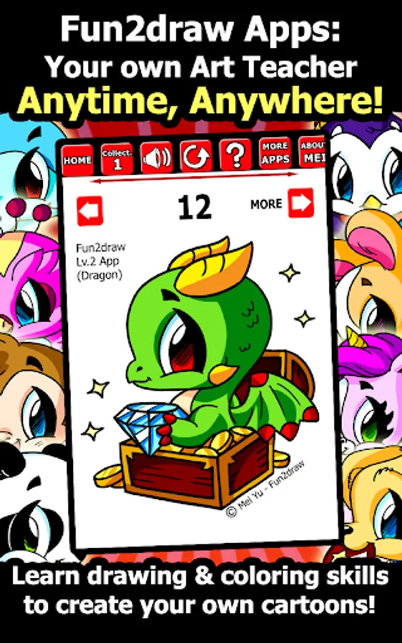 Designed by Canadian artist and Fun2draw creator Mei Yu, Fun2draw Lv2 offers super easy step-by-step drawing, coloring, & shading skills to turn simple shapes into beautiful, exciting cartoons, pets, and animals! Learn awesome tips & tricks from this cartoon art instructor to create your own cartoons in no time!