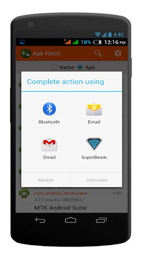 (i) Apk Fetcher fetch the apk's of installed application to external sd card.