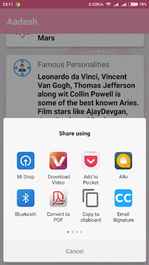 * Share names with family or friends with whats app, gmail , bluetooth ect.