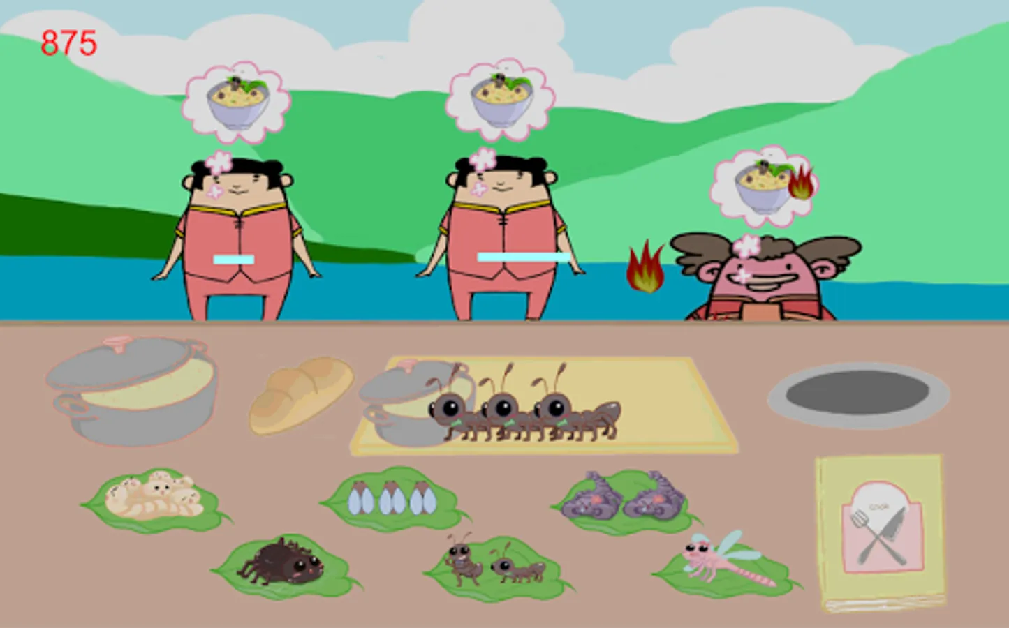 你知道螞蟻、蠍子、麵包蟲、蜘蛛...是營養豐富的食物嗎? 蟲蟲食堂有各種美味的蟲蟲麵包及湯品。客人絡繹不絕,蟲蟲廚神應接不暇!快來協助他料理美味的昆蟲大餐。
