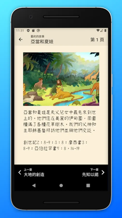 Allows you to easily read the Bible stories, simple pictures and texts let you know more about the Bible stories: