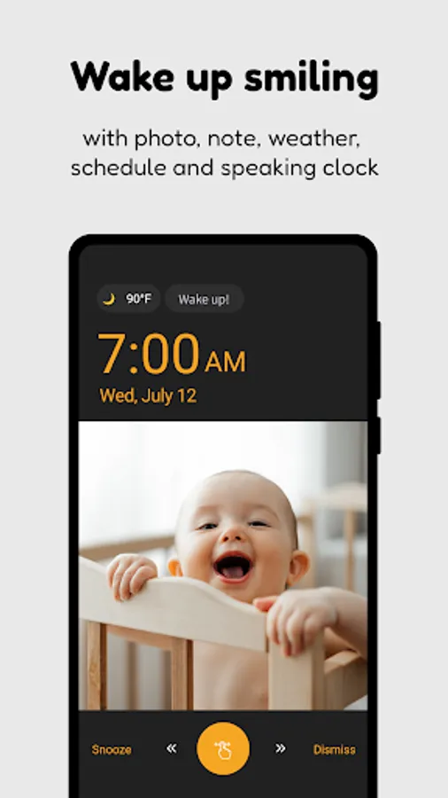 Start your day with a pleasant morning by waking up to your favorite song, your favorite photos, and your favorite quotes.