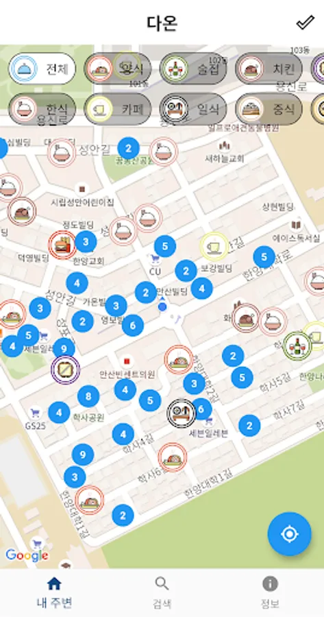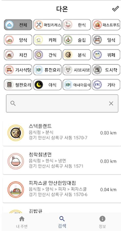 Itdaon provides maps of local currency food for all cities and counties in Gyeonggi-do, except Seongnam-si.