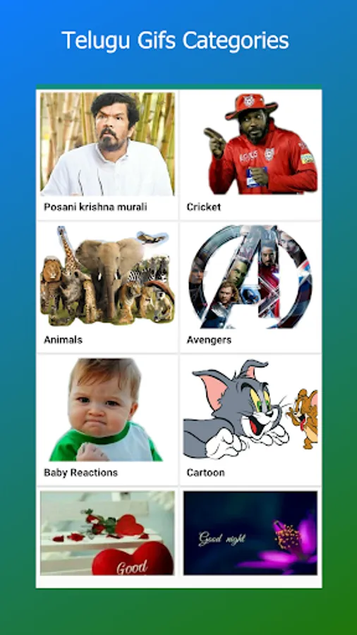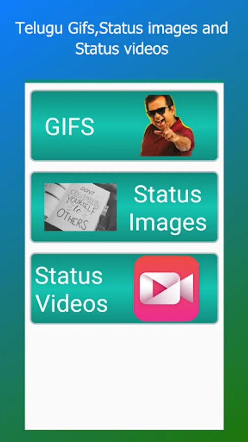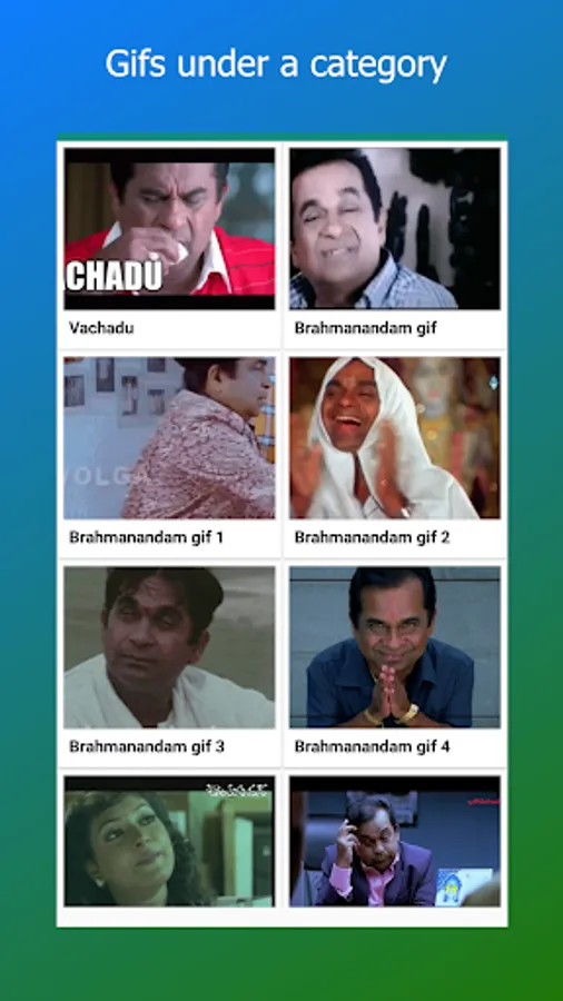 Telugu gifs collection app provides collection of telugu gifs, status images and status videos to all social media applications.