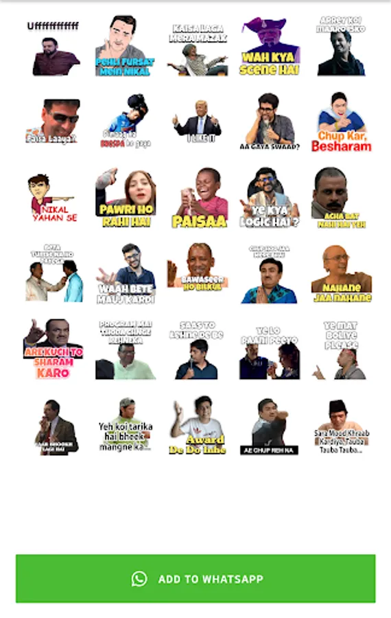 Find sticker packs like Sacred games, Mirzapur, Popular memes, Cricket, Carry Minati, Hindustani Bhau, Sacred Games, Abbey Saale, Gangs of wasseypur, Akshay Kumar, Funny memes, trending memes and much more.