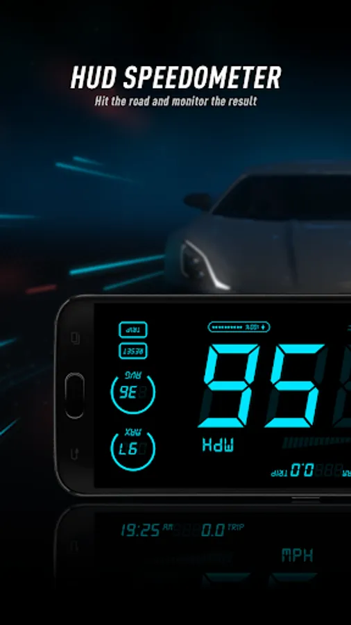 HUD Speedometer is a digital speedometer application with HUD mode support. It monitors your vehicle speed and also records the overall trip. It shows the max speed and average speed for you. Besides, it displays other device information, such as time and battery. It also supports HUD mode with a mirrored display, so that you can conveniently view the speed information through the front windshield.