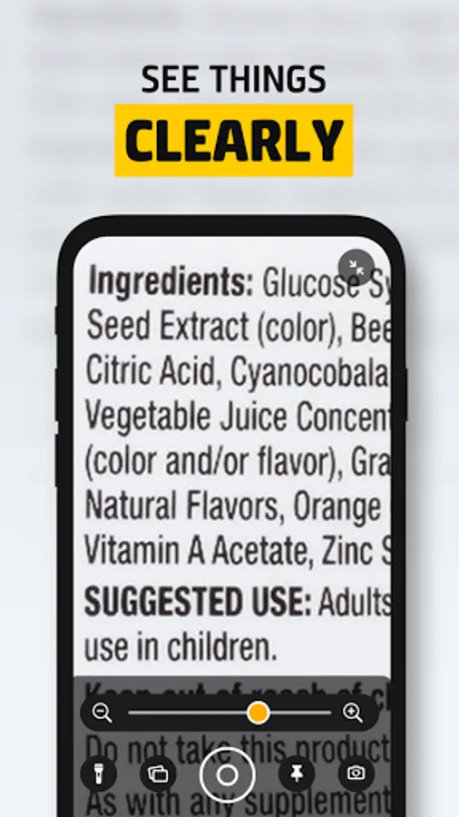 This is a digital magnifying glass for you to read and zoom small text. You can use it in the following cases: