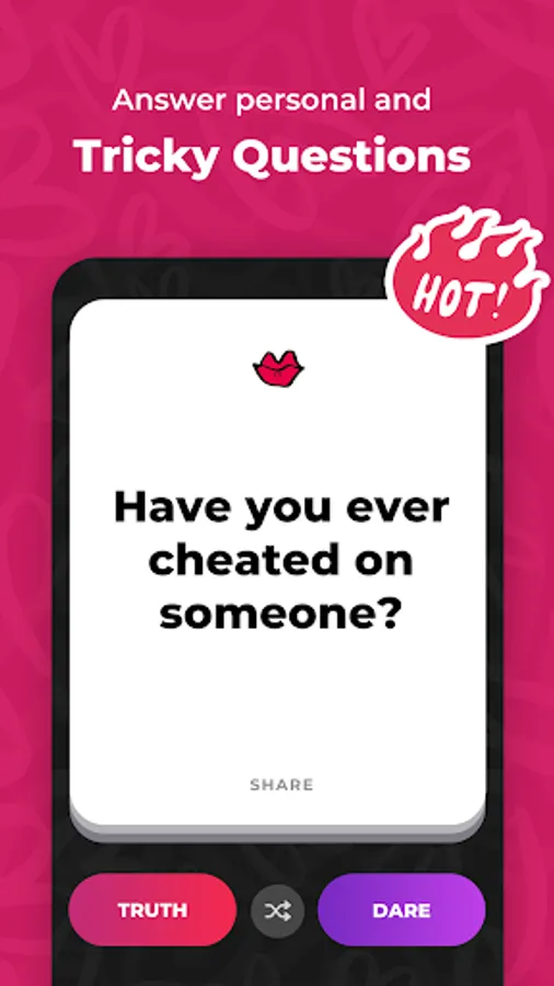 Looking for the best truth or dare game for party or couple with dirty truth or dare? This truth or dare couple game is the perfect way to find out just how well you know your partner, then get to know them even better. With more than 1000 dares this app is one of the best. Give it a try and download it right now.